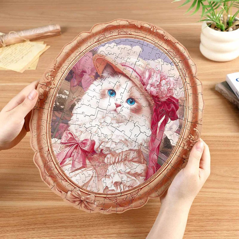 Springtime Kitty Portrait is a wooden jigsaw puzzle made up of specially shaped pieces. Featuring rich colors and the characteristic shape of the Springtime Kitty, this puzzle provides visual enjoyment and captivates puzzle enthusiasts. The challenging process of puzzle solving will be a brain training. Besides, it can be a nice gift or you can hang it on the wall as home decoration after completion.