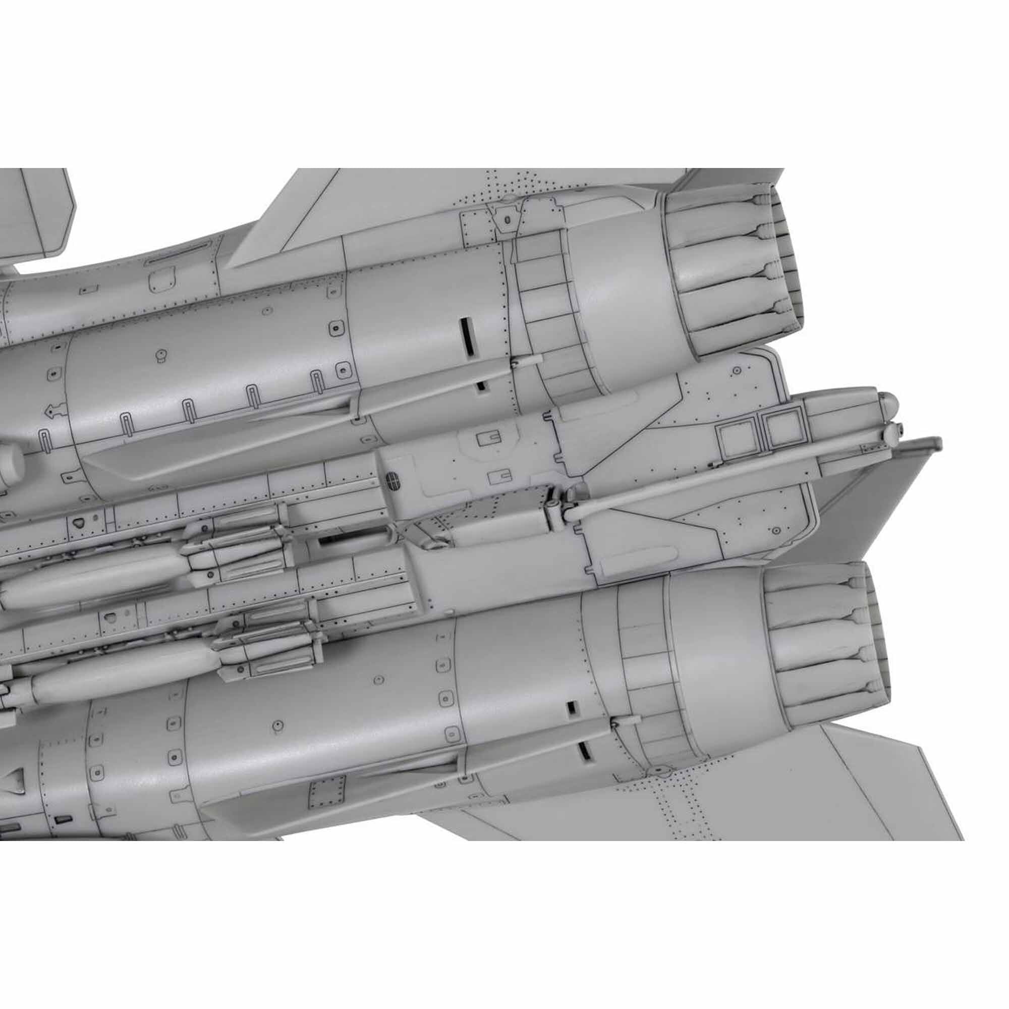 - Canopy, air intake side sections and fuselage sides are slide molded to ensure their shapes and surfaces are accurately depicted.