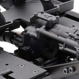 The VFD is designed to provide an optimal balance of performance, scale appearance, strength and versatile optional accessories. The VFD’s design places the motor forward and as low as possible to keep the weight where you want it. Out of the box the VFD Spec transmission provides a 6.5% overdrive to provide better turning and climbing performance without taxing your electronics. The T-case utilizes unique replaceable bearing plates to provide adjustable bearing positioning. The modular design of the bearing plates allow for optional gear ratios to be used inside the T-case. The VFD transmission is compatible with 540 brushed and brushless motors.