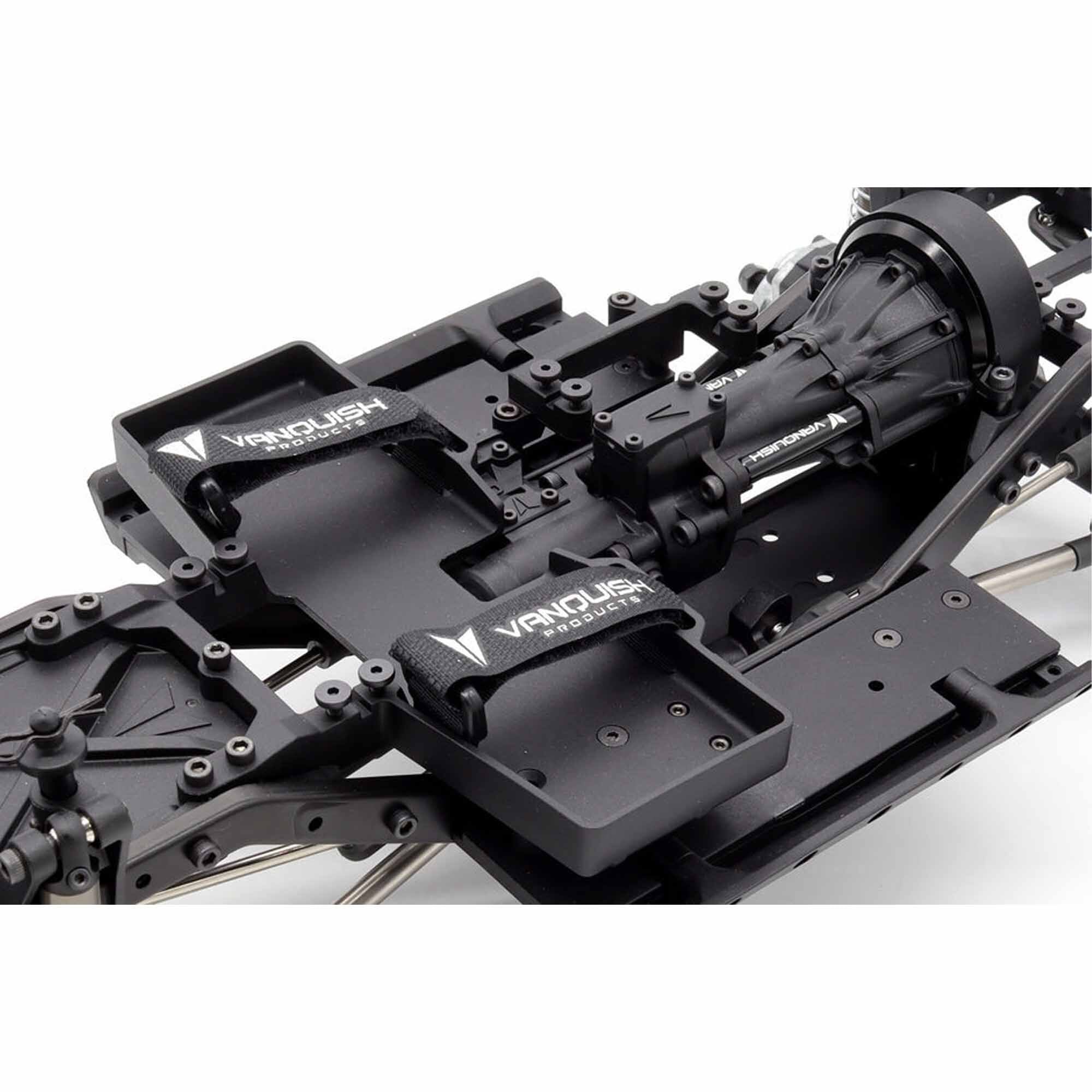 The Vanquish Products VS4-10 Chassis combines scale looks with high performance. Its steel C-channel design offers scale detail and strength, featuring dual servo mounts, winch line routing, and a fuel cell. The molded rock sliders have a replaceable tapered outer portion. The machined aluminum panhard mount withstands severe trail impacts. Molded shock towers secure the 80mm Incision S8E Shocks. Pro rod ends are also included.